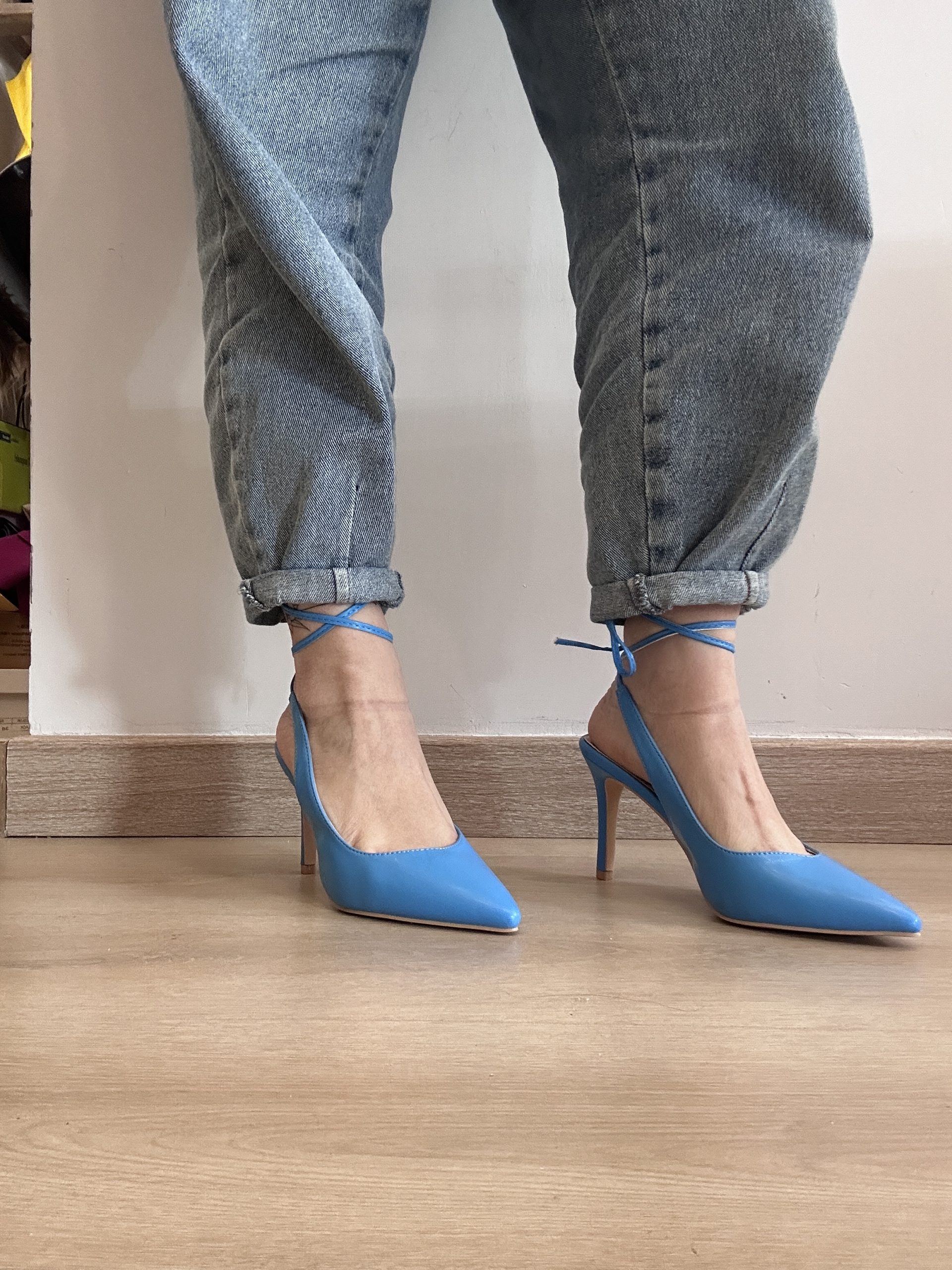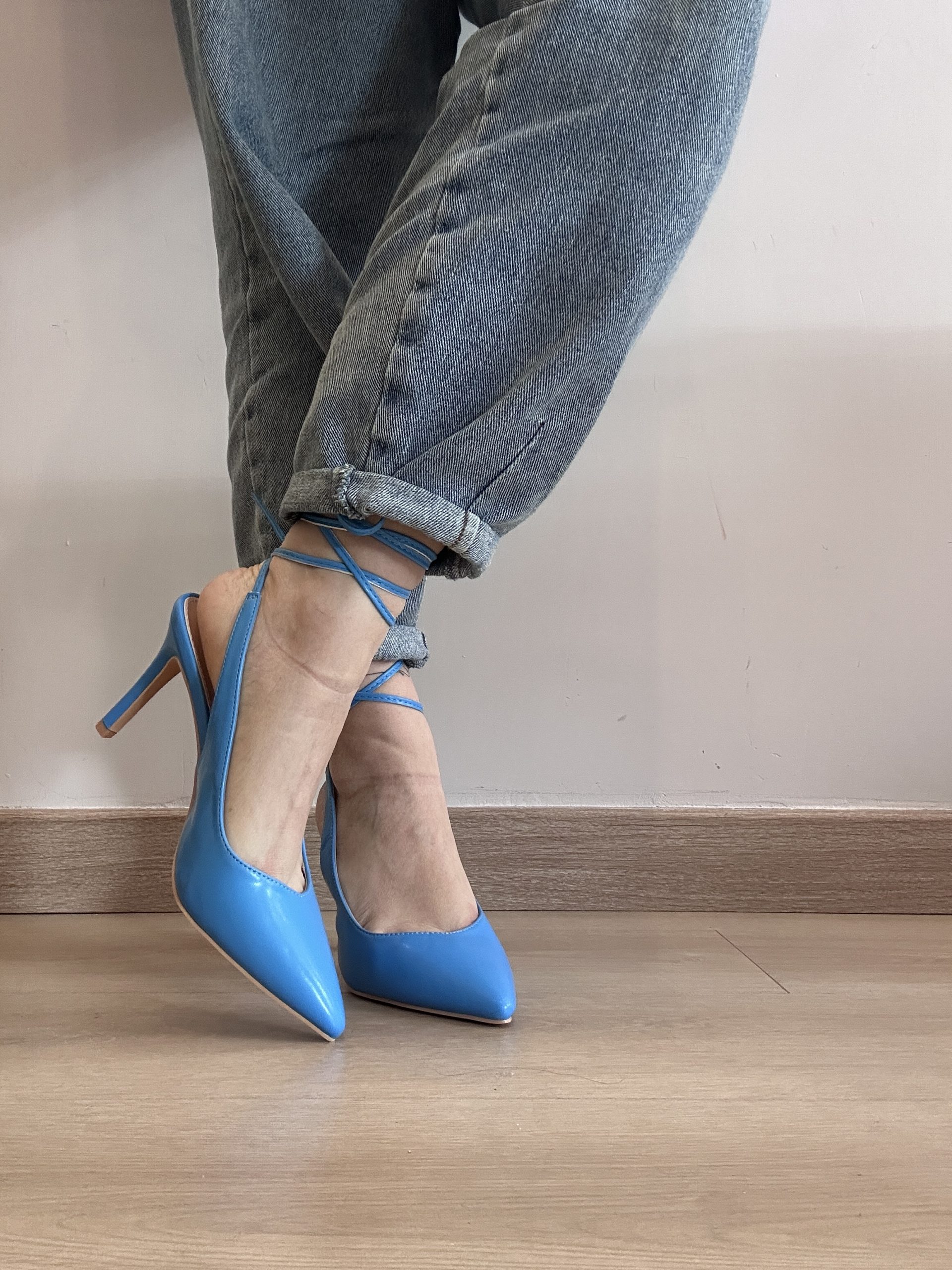 Décolleté mia celeste, calzata regolare, allacciatura alla schiava, tacco 10cm circa, se avete un mezzo numero prendete il numero superiore.
