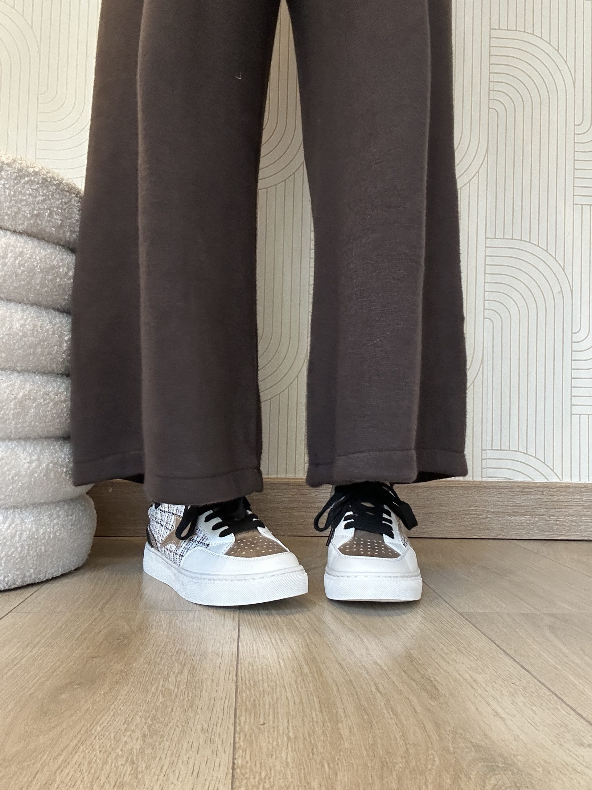 Sneakers tex white black, tomaia abbellita da tessuto, glitter oro, e un tocco di leopardato. fondo in gomma, stringa nera in cotone, calzata regolare ma se siete indecise tra due numeri prendete il numero superiore.