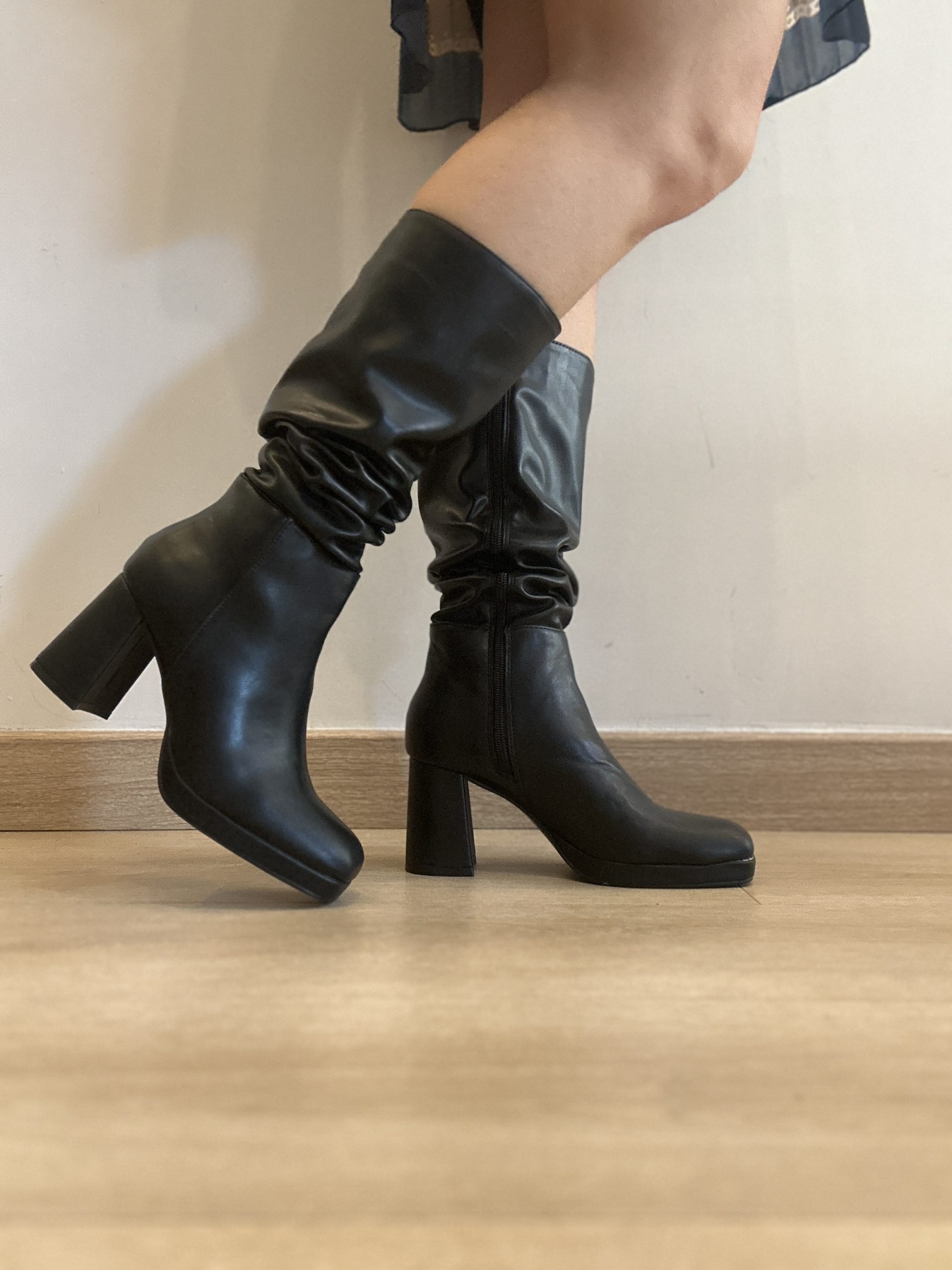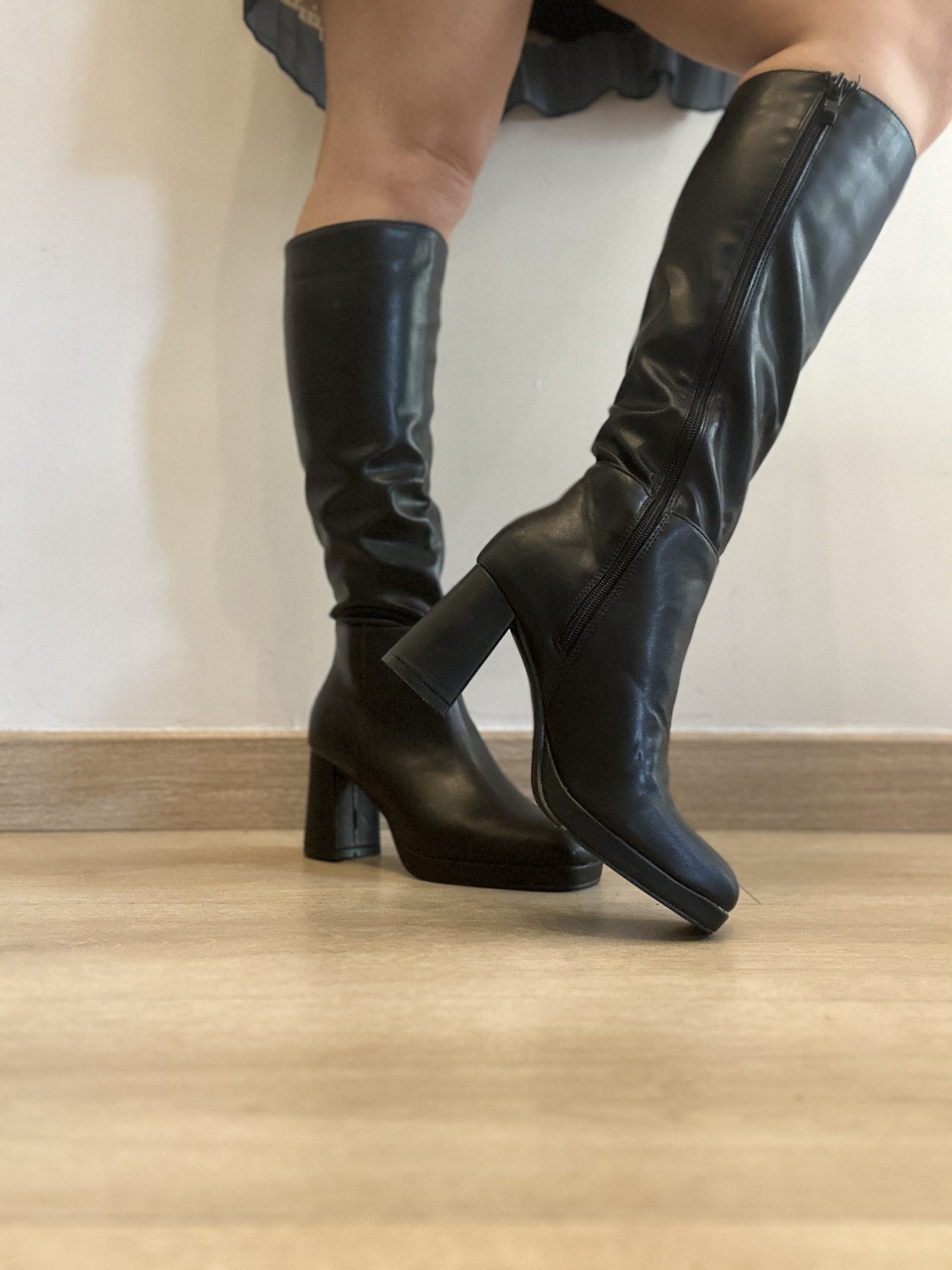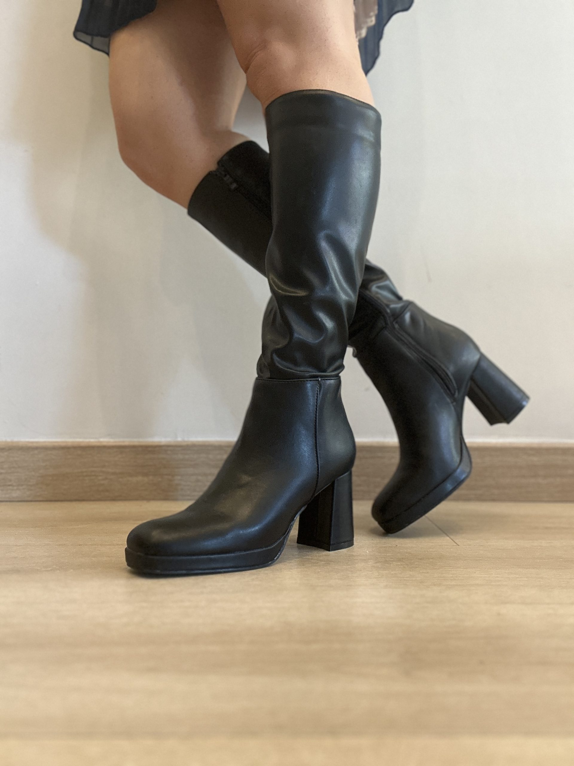 Stivale Emily nero, calzata regolare, tacco 9cm circa con plateau, zip a gambale intero.